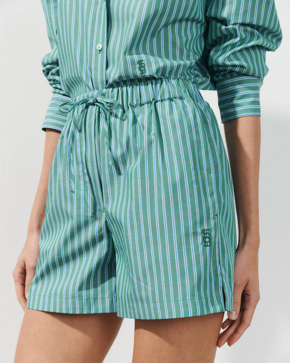 Chemise oversize en popeline de coton à rayures bleues et vertes Kaia