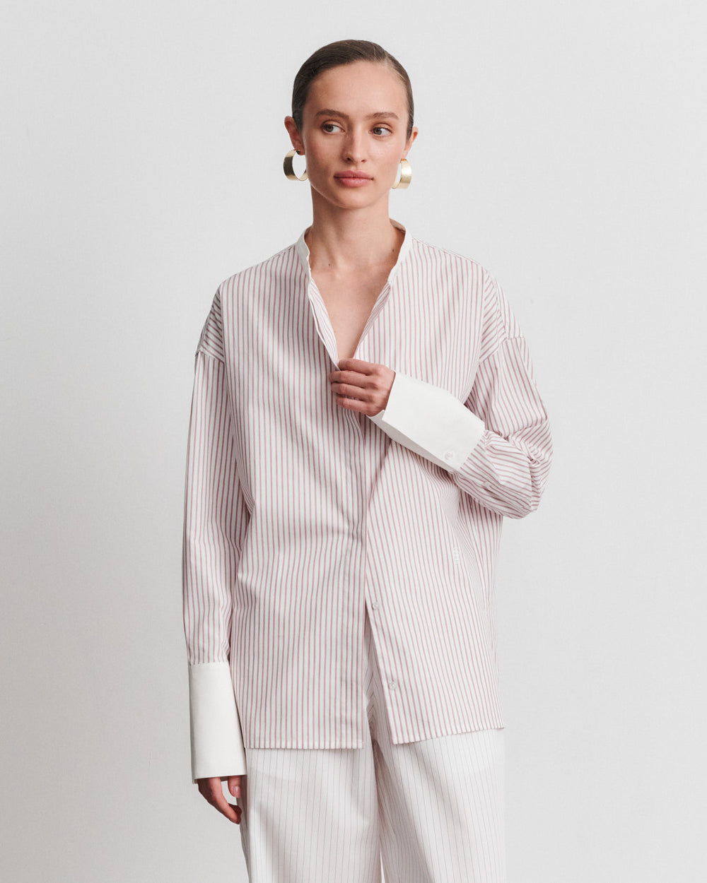 Chemise oversize en popeline de coton à rayures rouges Kaia