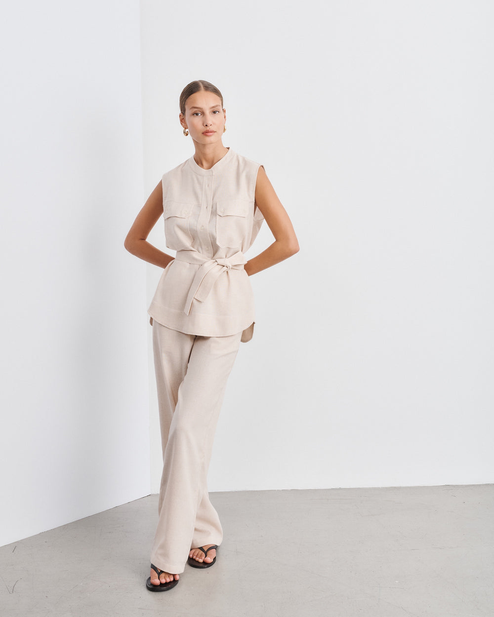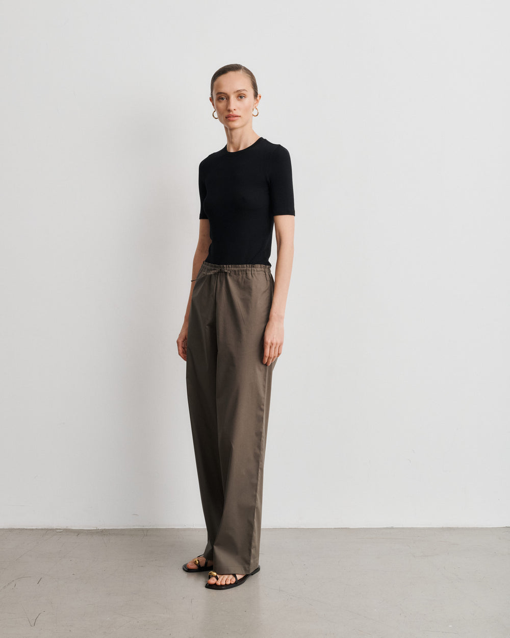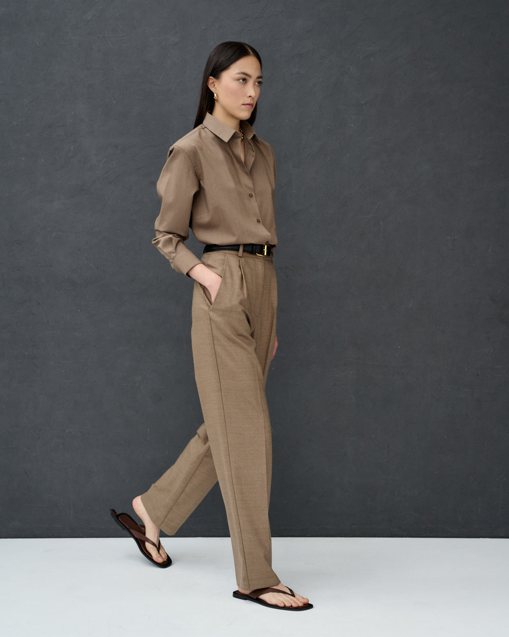 Chiara Taupe Cotton Poplin Short-Sleeved Shirt