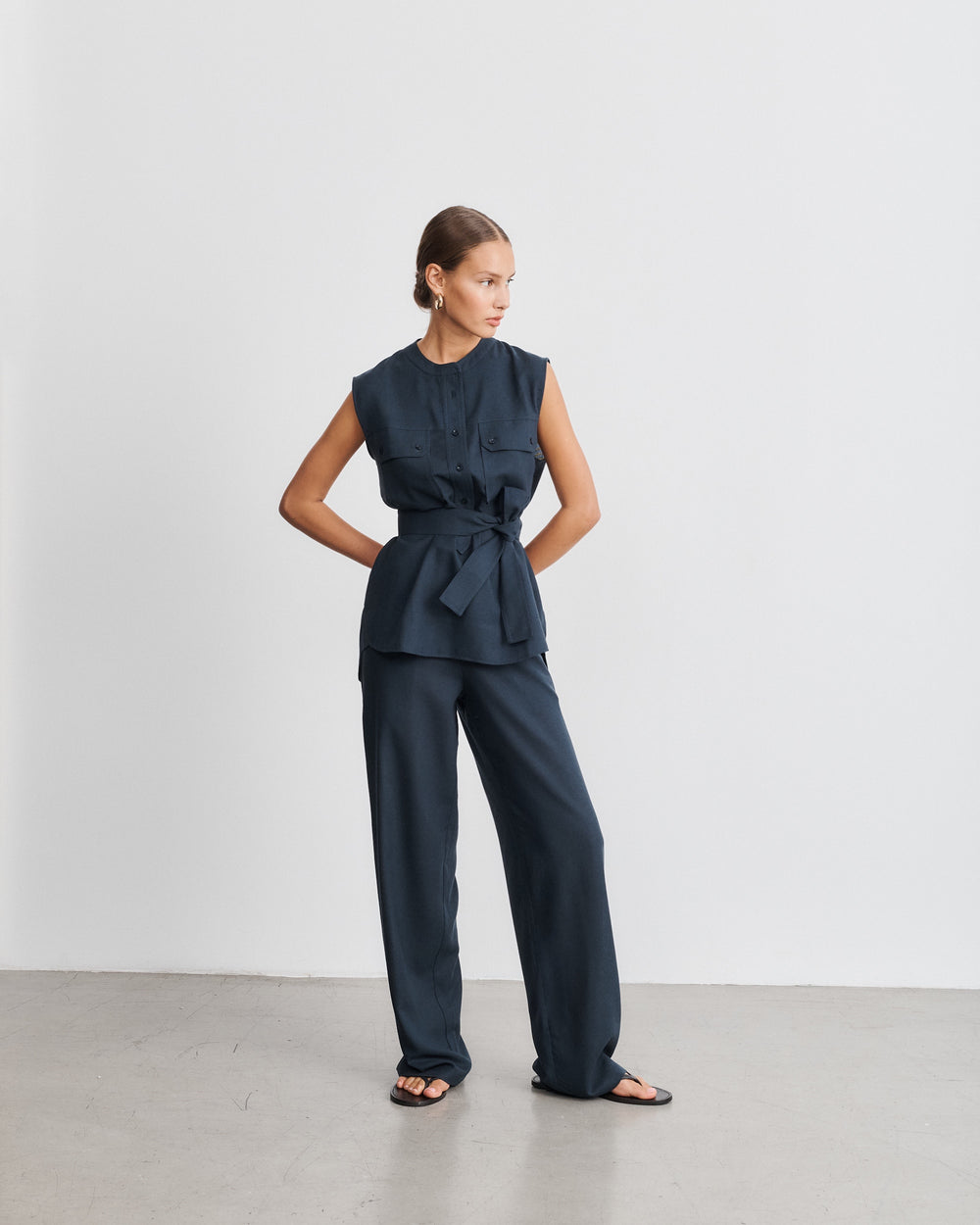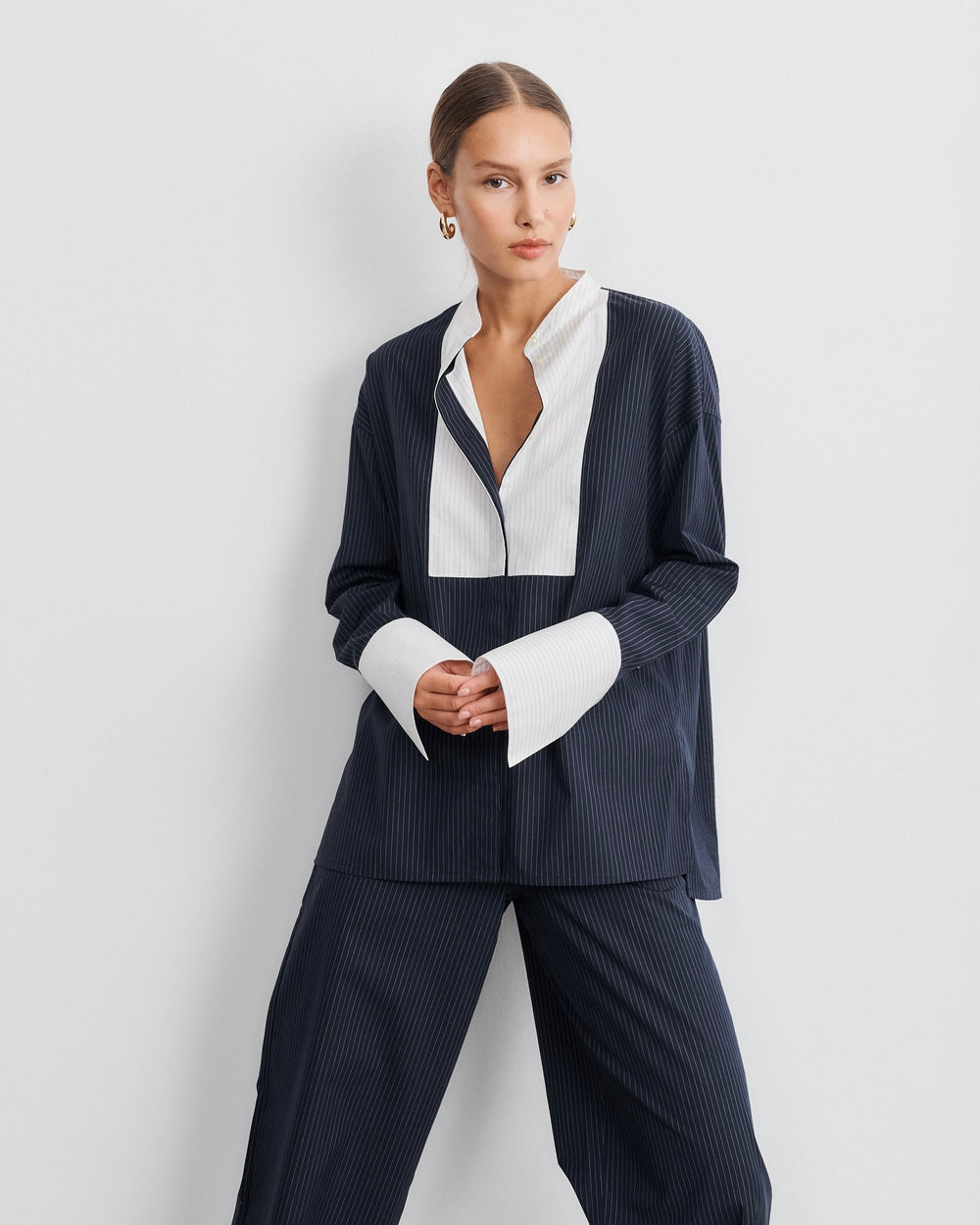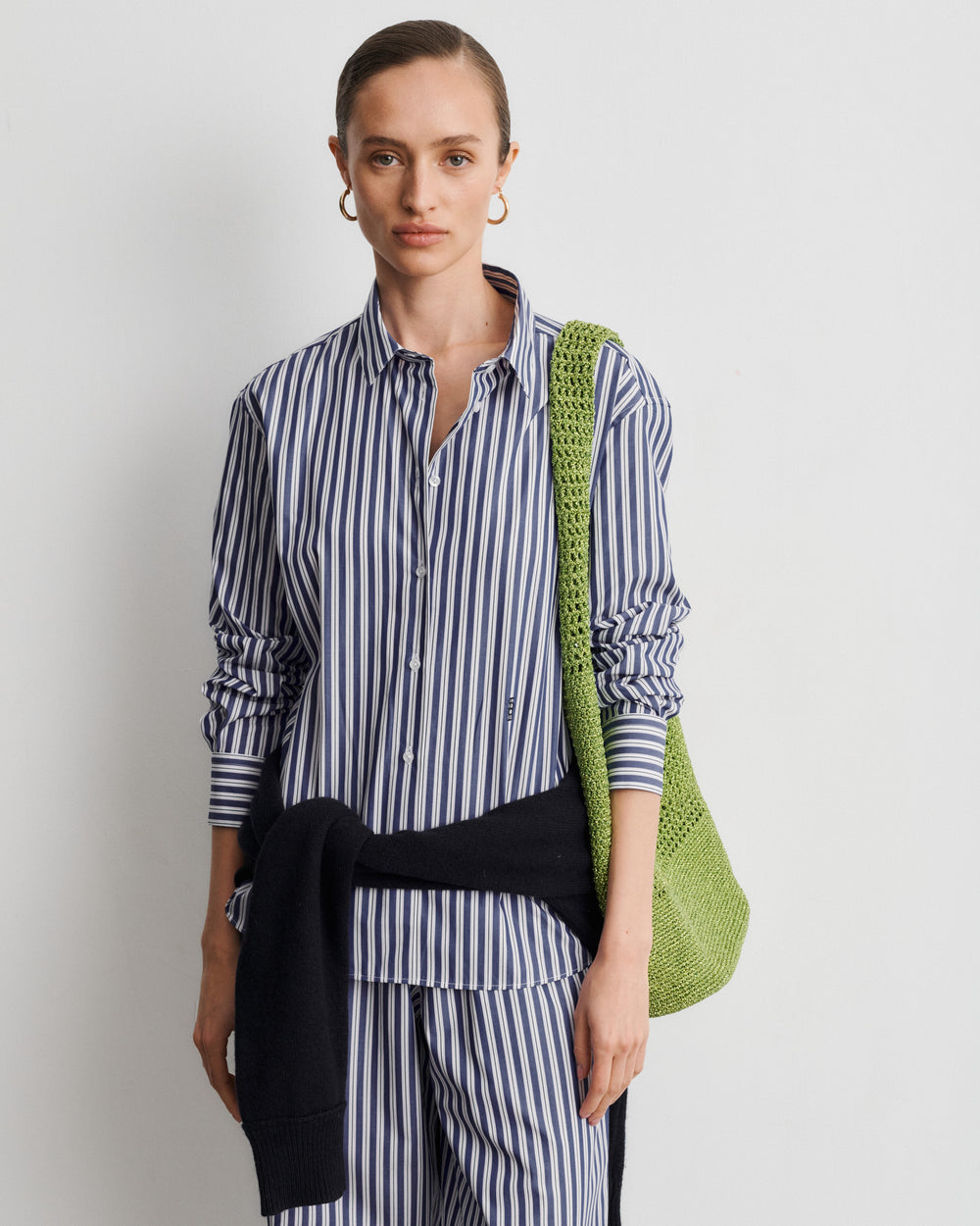 Esther Deep Blue Striped Cotton Poplin Shirt