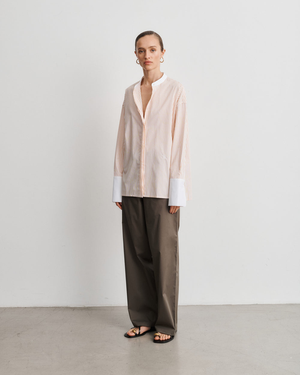 Maria Terracotta Cotton Poplin Shirt with Bib