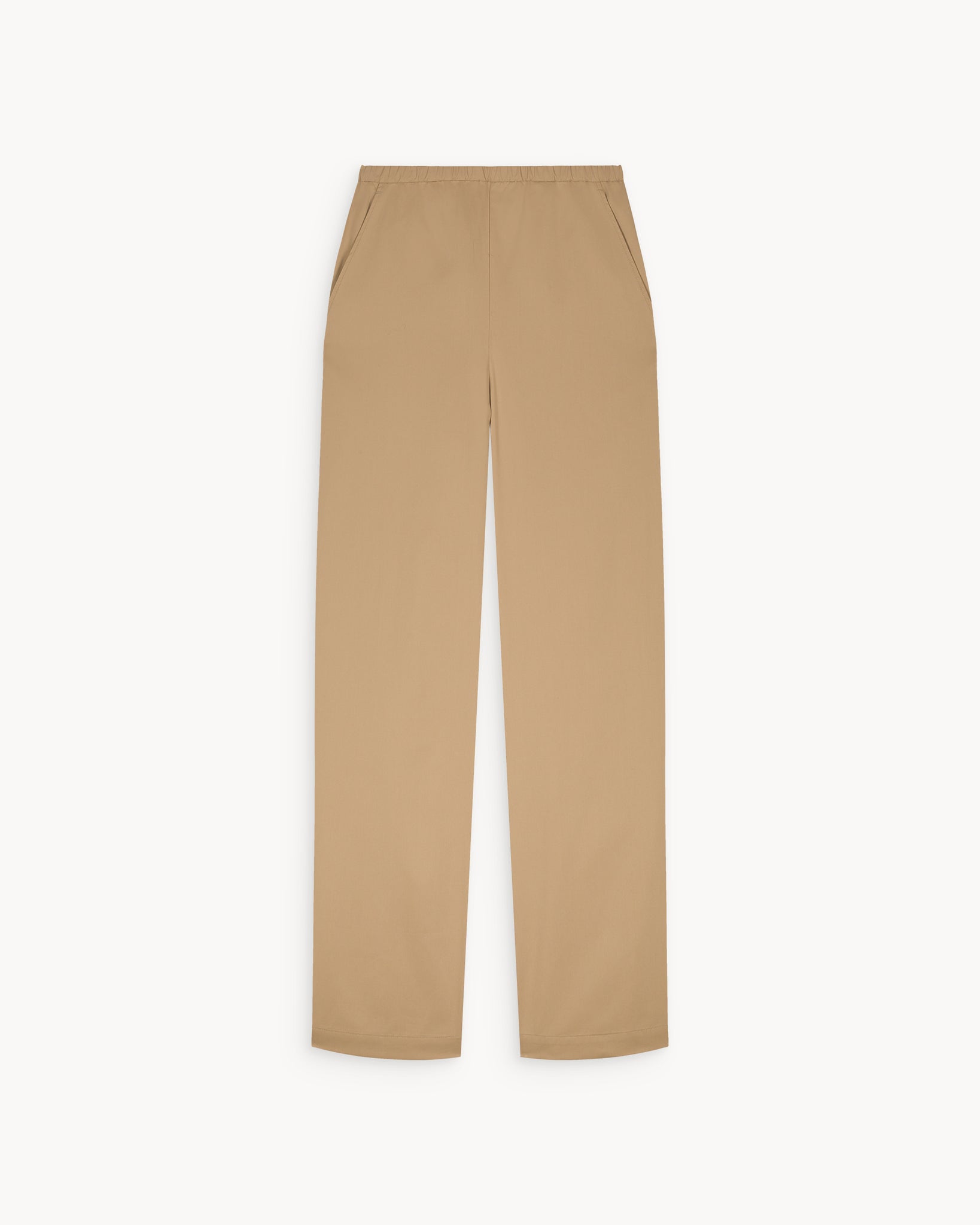 "Our Andrea cotton poplin pants feature a straight fit with elasticated waistband and two pockets on the hips and back. An invisible system allows you to tighten them more or less for maximum comfort. Pair them with the Kaia shirt in the same poplin to create the chic set that will see you through all summer."